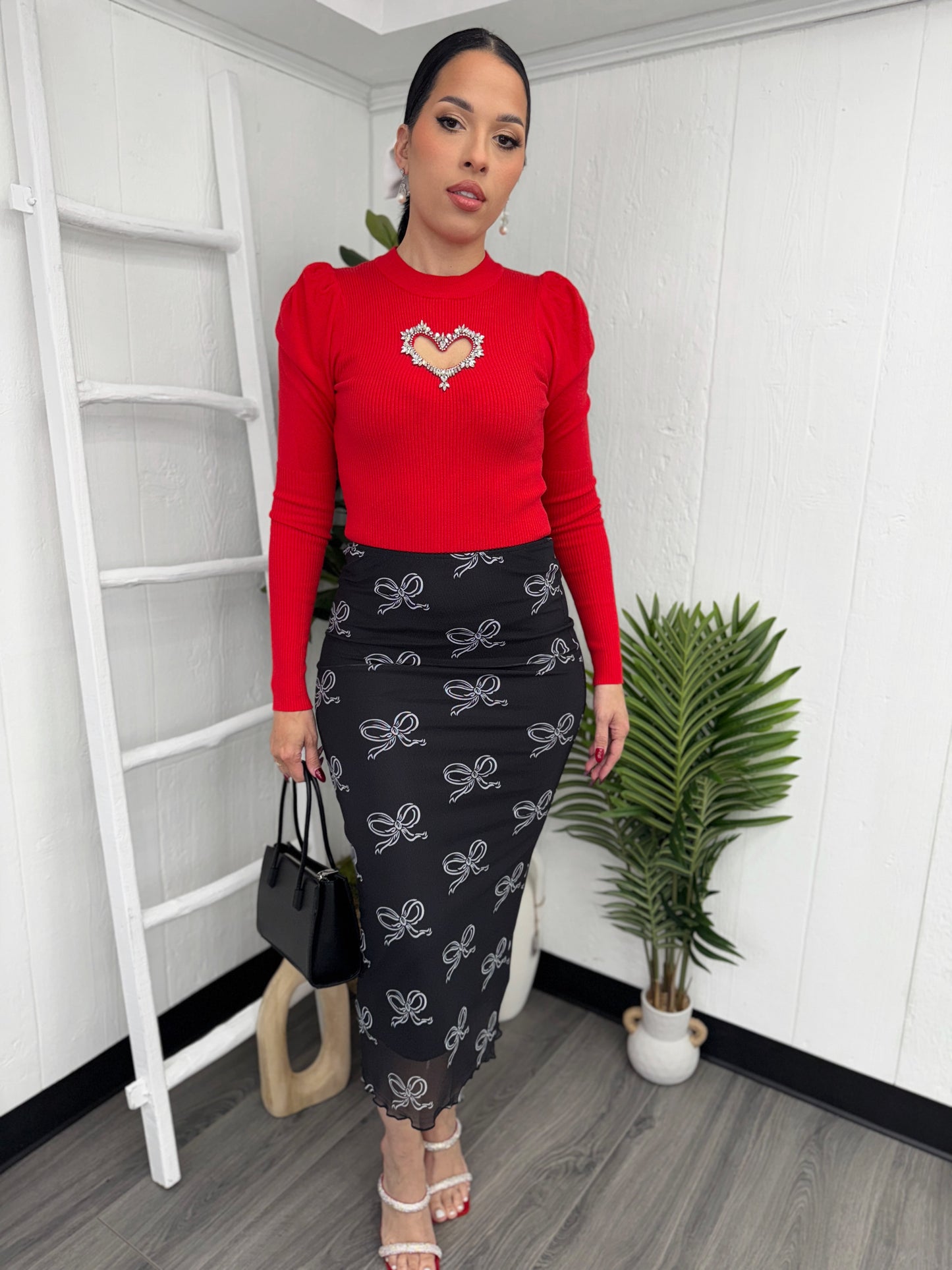 Elegant and feminine, this high-waisted black skirt with a front bow is the definition of effortless sophistication. The soft, stretchy fabric hugs your curves while offering all-day comfort, making it perfect for the office, dinner dates, or elevated events.