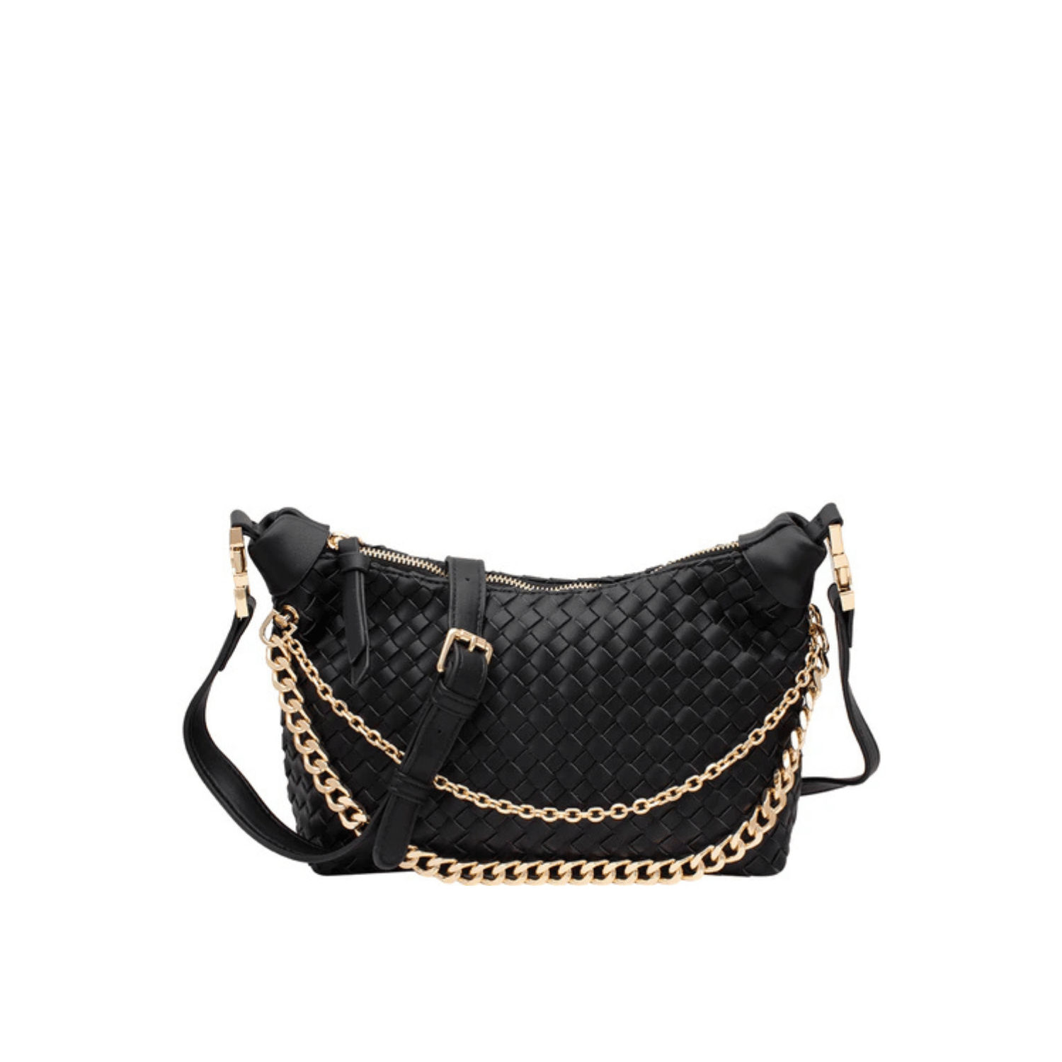 Minimalist, elegant, and touched with luxury. The Noir Chic Bag features a sleek black woven design and a bold gold chain that adds the perfect contrast. A must-have for glamorous, confident women—perfect from day to night.