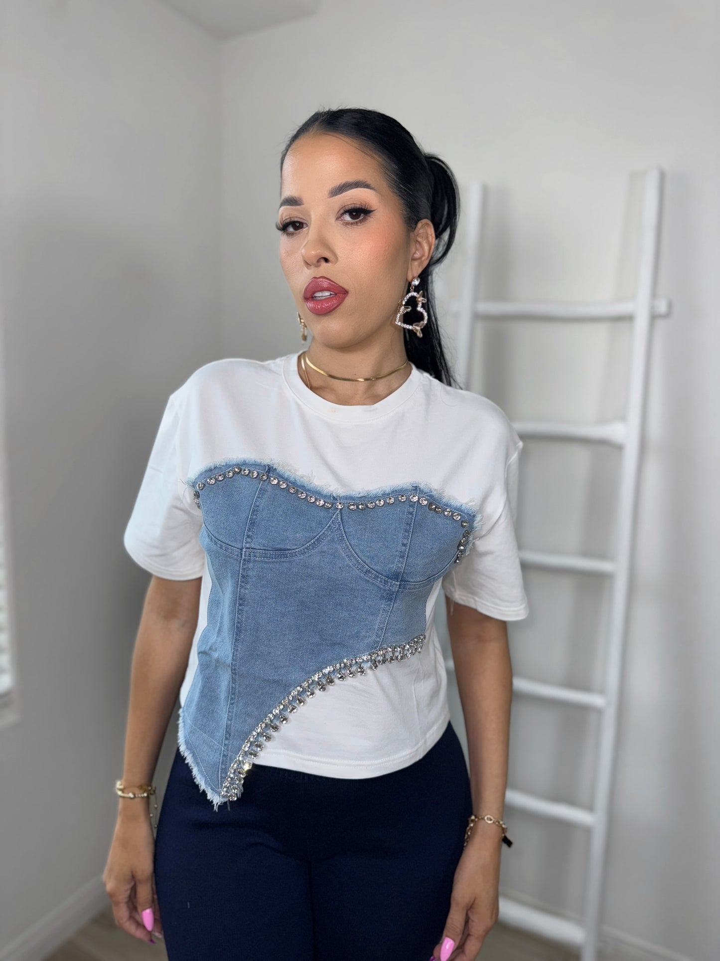 Denim Crystal Corset Top
