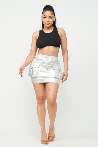 Funcional, atrevida y con actitud. Esta mini falda cargo combina lo urbano con el estilo glam para la mujer que impone donde pisa.