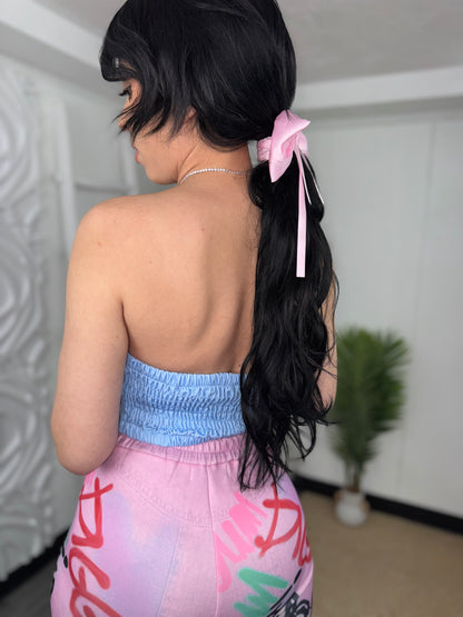 Un corset azul baby con brillo sutil que roba miradas al instante. Su diseño estructurado moldea tu figura y le da ese toque elegante y poderoso a cualquier outfit. Ideal para combinar con jeans o una falda de impacto.