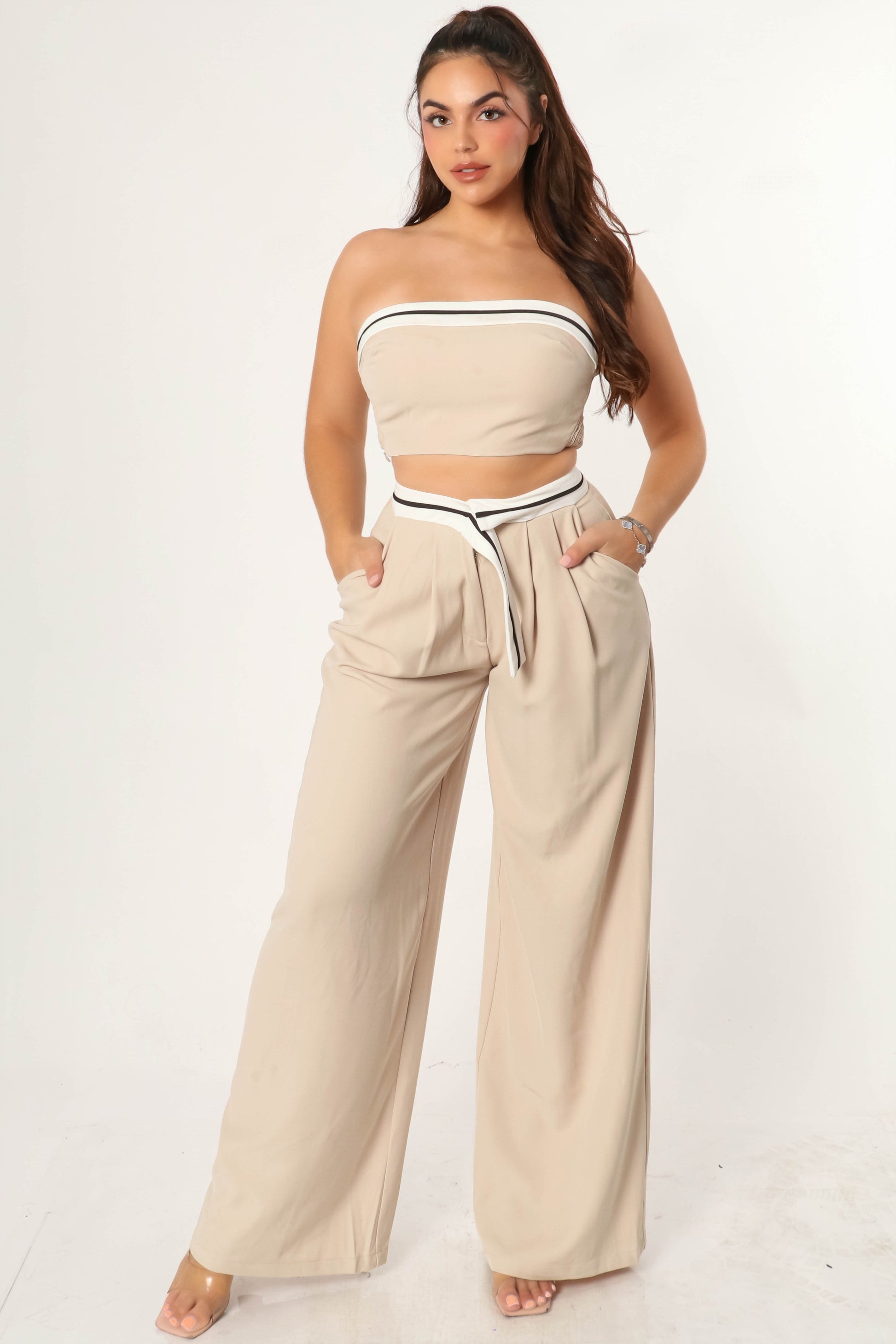 Luce sofisticada sin esfuerzo con este set de top tipo bandeau y pantalón palazzo de tiro alto. Ideal para eventos especiales, brunch con amigas o para elevar tu estilo diario con un toque de lujo. Diseñado para la mujer segura que busca comodidad sin sacrificar glamour.
